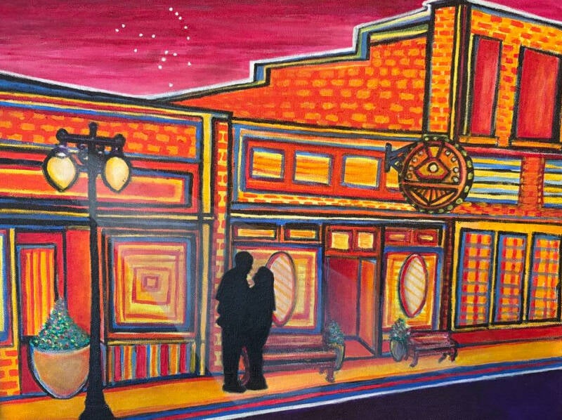 An example of a commission piece. This was requested as an anniversary gift. It features a local restaurant where their first date was held.