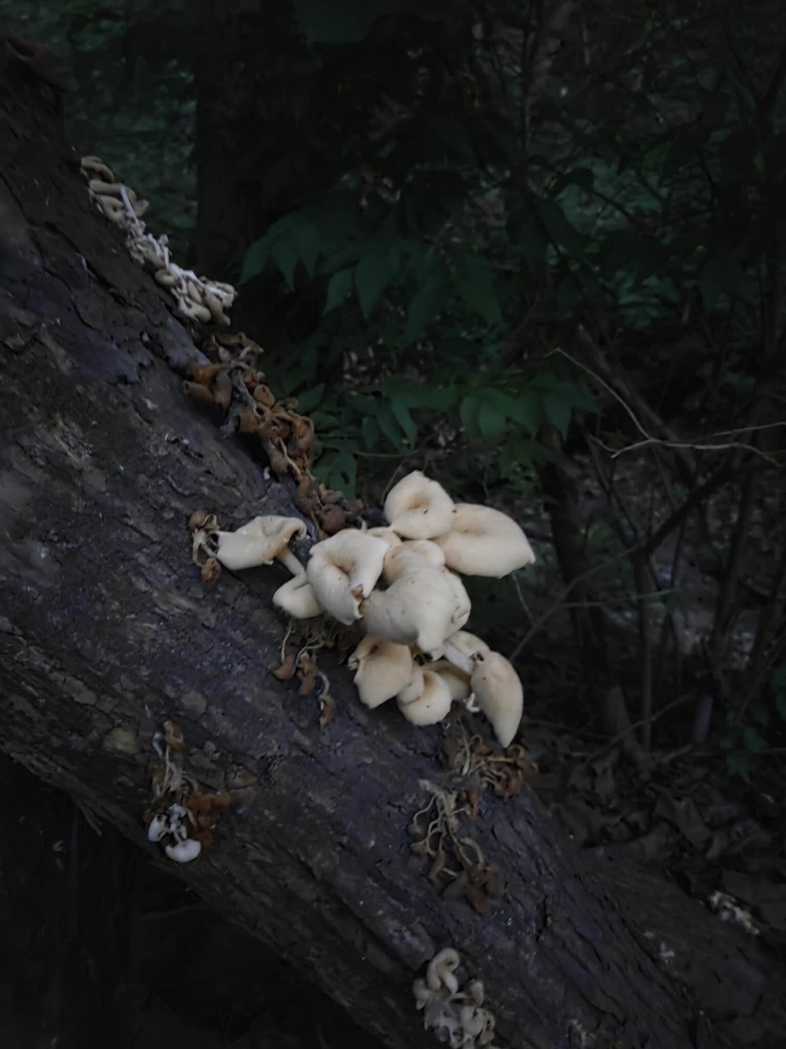 Photgraph by guest artist Aaron Cihla. Photograph of local mushrooms growing outside an abandoned school. Darker image to draw attention to the location and placement of the mushrooms.